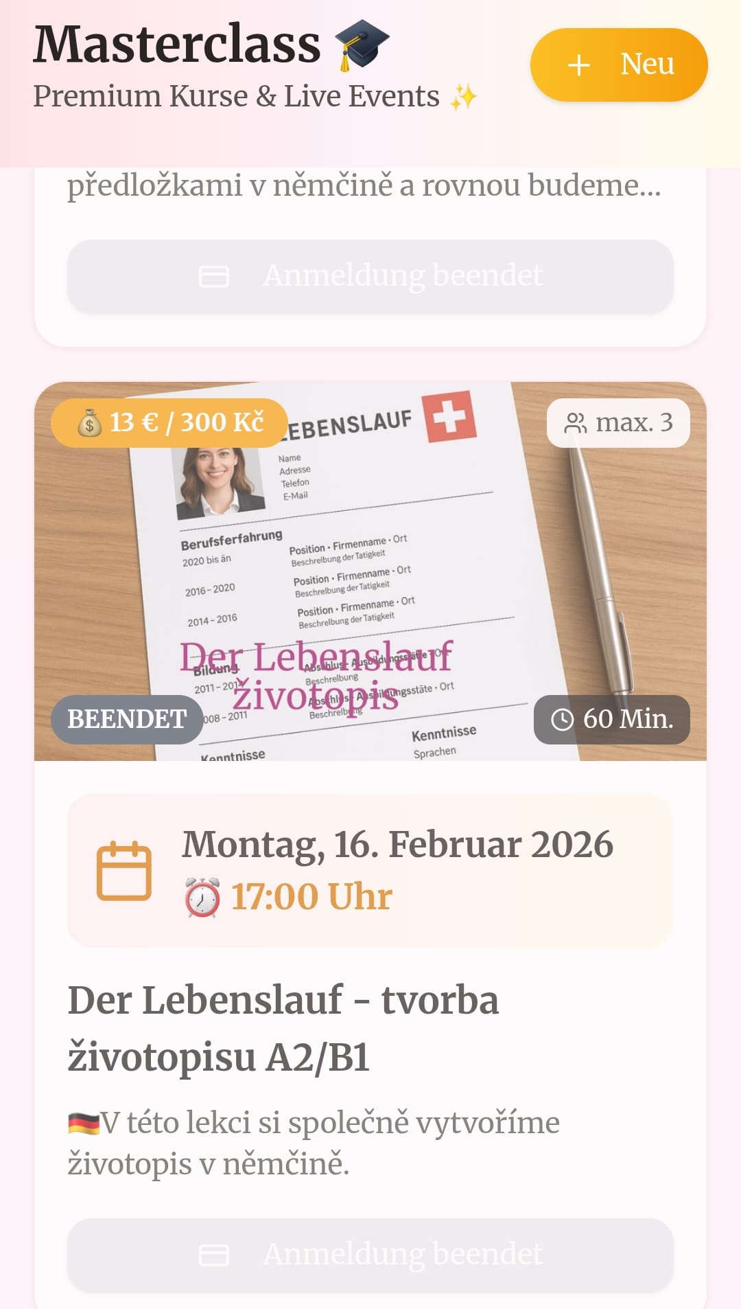 Moje celé 18leté zkušenosti jsou tady, připravené přímo pro Tvůj úspěch v němčině. Všechno je připravené od A do Z – žádné hledání, žádné přemýšlení. Stačí začít a uvidíš rychlý pokrok. GAMECHANGER!